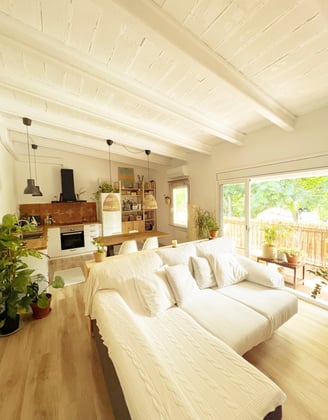 Benvingut a la majestuosa transformació d'aquest àtic en un santuari acollidor de proximitat i natura, on la fusta s'erigeix com el cor palpant de la nostra decoració integral!